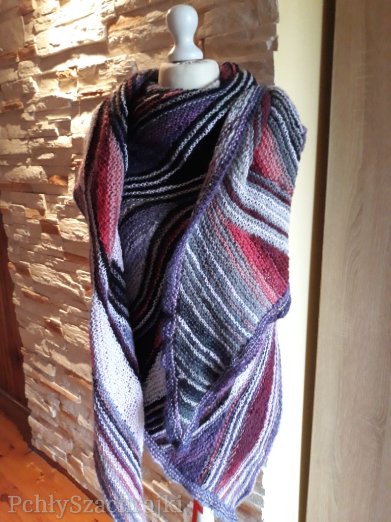 Miałam ochotę na jakąś chustę. Wzór miał być łatwy, przyjemny i telewizyjny. Abym nie musiała pilnować wzoru i mogła obejrzeć jakiś film. Mam tu ogromne zaległości.